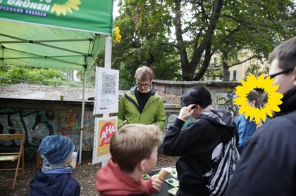 Anlässlich des Weltkindertages fand unser nunmehr 17. Grünes Kinderfest am 19. September im und um den Hermann-Seidel-Park in Dresden-Striesen statt. Unterstützt wurde das Fest von Valentin Lippmann (Landtagsabgeordneter), den Stadträt*innen Dr. Wolfgang Deppe, Tina Siebeneicher und Agnes Scharnetzky und unseren Stadtbezirkebeirät*innen, sowie vielen weiteren Helfer*innen. Bei unserer mobilen Rallye konnten die Kinder Rätselfragen rund um unsere Stadtbäume, aber auch zum Thema Kinder- und Jugendbeteiligung lösen. Sportlich wurde es dann bei der letzten Station beim Torwandschießen mit unserem Bundestagskandidaten Kassem Taher-Saleh. Am Ende der Rallye gab es für alle Kinder kleine Überraschunggspreise.