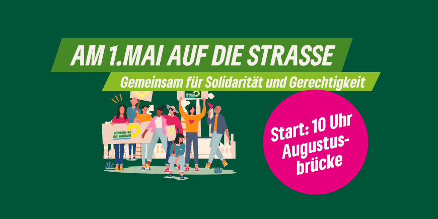 Schließ Dich gemeinsam mit uns den Gewerkschaften an und geh für eine gerechte Gesellschaft auf die Straße. Wir starten 10 Uhr an der Augustusbrücke. Außerdem sind wir bis 15 Uhr für euch auf dem Schlossplatz da. Kommt vorbei!