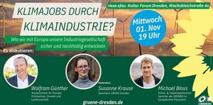 Diskutiert gemeinsam mit unserem Sächsischen Umweltminister Wolfram Günther und dem Europaabgeordneten Michael Bloss unter Moderation unserer Sprecherin Susanne Krause!