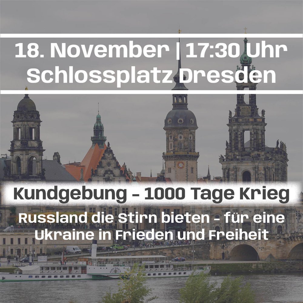 Diese Demonstration ist eine Gelegenheit, gemeinsam ein deutliches Signal zu setzen – gegen diejenigen, die die russische Propaganda übernehmen, und für eine Zukunft, in der territoriale Unversehrtheit und freiheitliche Selbstbestimmung der Ukraine gewährleistet sind. Unsere Solidarität gilt allen Ukrainerinnen und Ukrainern, sowohl den Geflüchteten bei uns in Dresden als auch denjenigen, die in ihrem Heimatland geblieben sind, um es zu verteidigen.