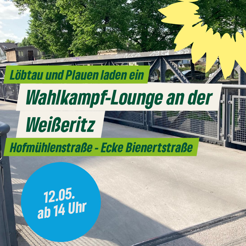 Wir Grüne aus den Wahlkreisen Plauen und Löbtau laden Sie ganz herzlich zu unserer Wahlkampf-Lounge an der Weißeritz ein.