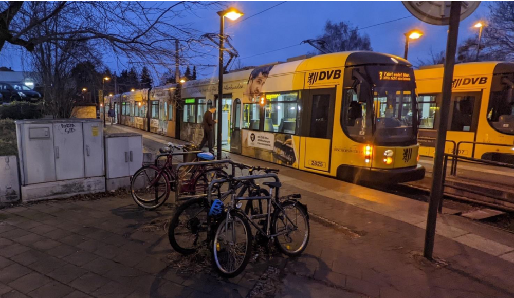 An vielen Haltestellen der DVB im Stadtbezirk Plauen gibt es keine oder außerordentlich wenige Haltebügel für Fahrräder. Wer sein Rad nicht sicher an der Haltestelle befestigen kann, wird auf die umweltschonende Kombination aus DVB plus Rad leider oft verzichten. Dabei ermöglicht das Fahrrad eine schnelle Fortbewegung für die "letzte Meile" und erweitert den Erschließungsradius der Tramlinien deutlich! Deshalb hatten wir das Thema auch in unserem "Radzielnetz Plauen" aufgegriffen.