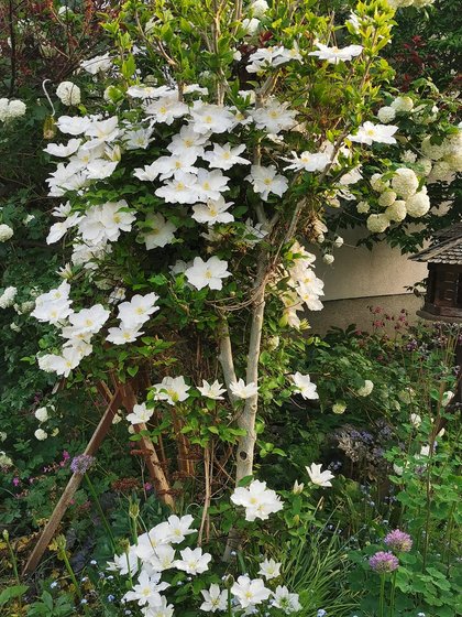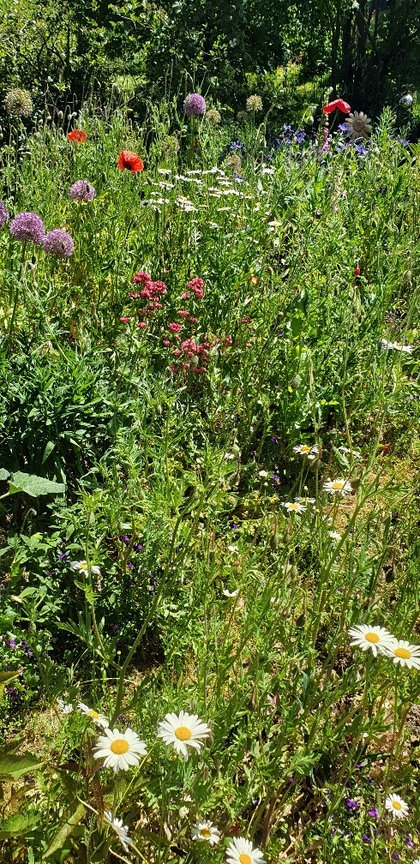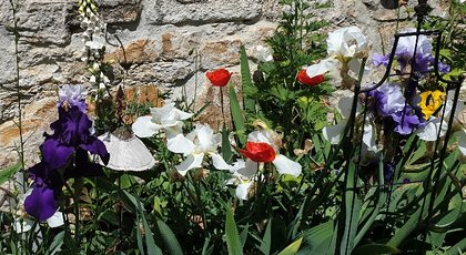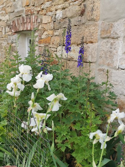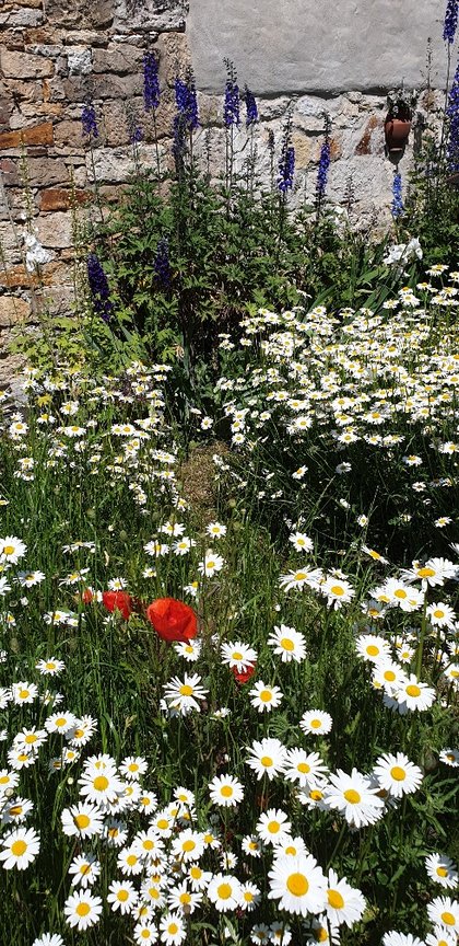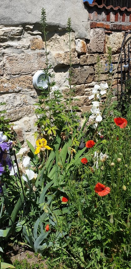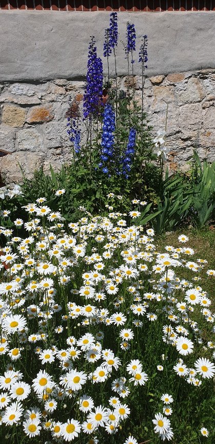 Die Blumenpracht auf den folgenden Fotos ist schon die dritte (!) Blütenperiode in diesem Jahr mit weißen Margariten und Feldmohn, üppig blühenden Schwertlilien, Lavendel, Fingerhut, Ehrenpreis, Königskerzen, Rittersporn, Stufenenzian, Pfingstrosen, Lilien, Akelei, Salomonsiegel, Azaleen, Salbei und noch viel mehr.