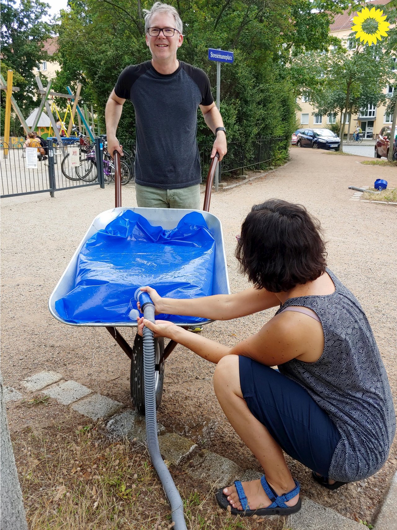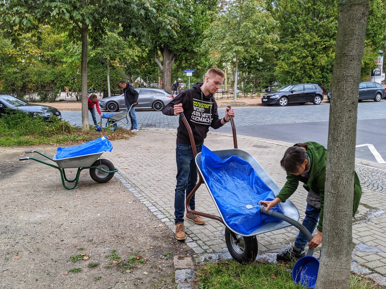 Vergangenen Mittwoch haben wir für dieses Jahr letztmalig gemeinsam Bäume am Stresemannplatz bewässert.