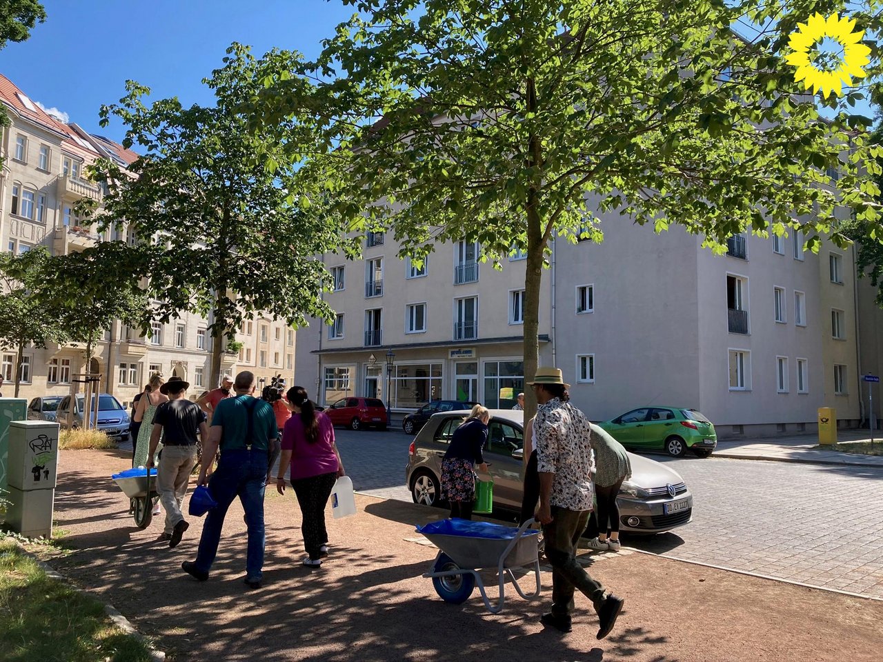 Am 22. Juli starteten die Blasewitzer Grünen ihr Gießprojekt für die Kastanien am Stresemannplatz. Eine Aktion, die in Kooperation mit "Parents For Future/Fridays For Future" im Rahmen des Projektes "Dresden gießt" stattfindet.