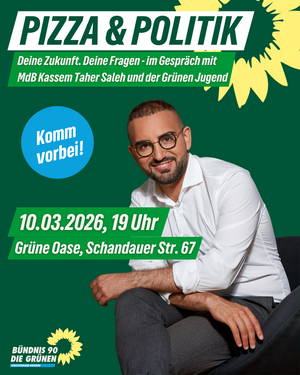 Pizza und Politik! Deine Zukunft. Deine Fragen - im Gespräch mit MdB Kassem Taher Saleh und der GRÜNEN JUGEND